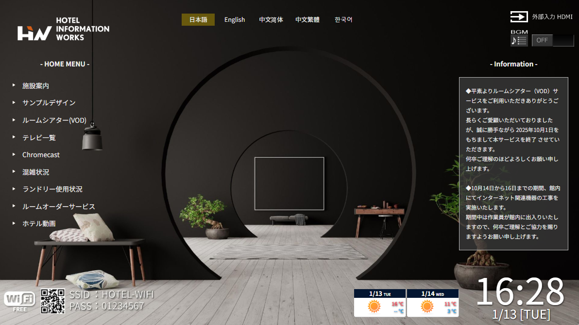 ルームシアターは、滞在のメインコンテンツではありません。